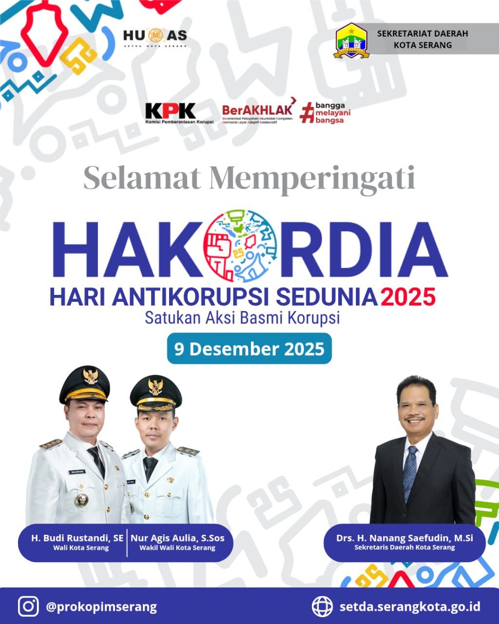 Kota Serang, 11 Desember 2025 — Pemerintah Kota Serang menggelar Pengumuman Pemenang Lomba Resik Lan Aman Tingkat Kota Serang 2025...