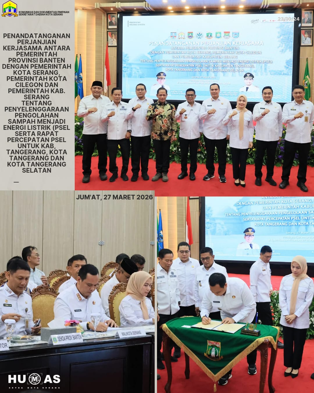Penandatanganan Perjanjian Kerja Sama Antara Pemerintah Provinsi Banten dengan Pemerintah Kota Serang, Pemerintah Kota Cilegon dan Pemerintah Kab. Serang